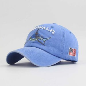 Korean Style Embroidered Letter Shark Duck Tongue Cap Unisex Fashion Sun Protection Cap Washed Denim Baseball Cap